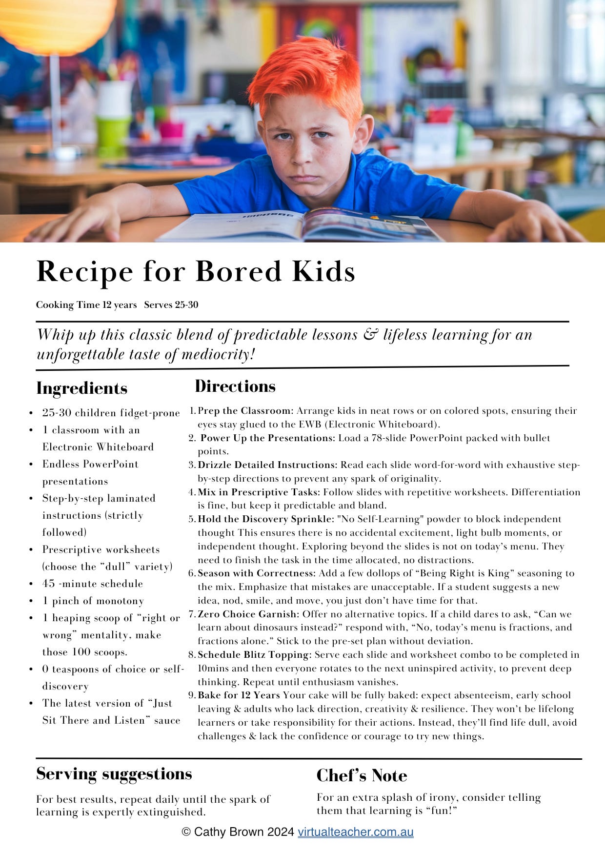 RECIPE FOR BORED KIDS: Great conversation starter.